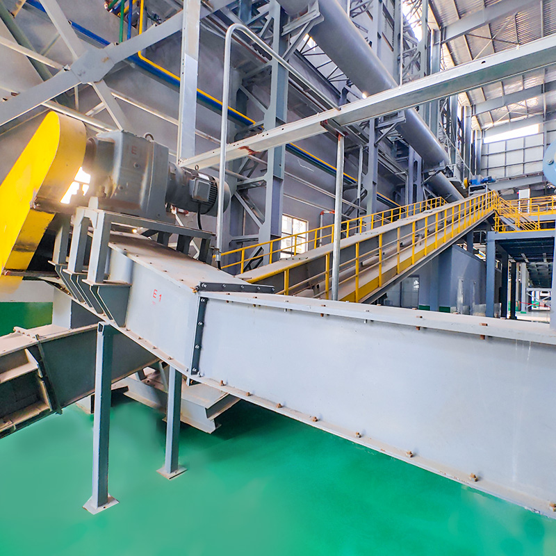 During vertical lifting, due to the material's inherent characteristics, the scraper chain pushes the material in the direction of motion, generating lateral pressure within the material, creating internal friction. At the same time, the continuous feeding of the lower horizontal section exerts a pushing force on the material above, forcing it upward. When these forces overcome the external friction between the material and the trough wall and the weight of the material itself, the material forms a continuous, integrated flow and is lifted. Due to the vibration of the scraper chain, material arches sometimes break and sometimes form. Consequently, during vertical transport, the material lags behind the chain, slightly affecting conveying efficiency and speed, but not hindering normal operation. The buried scraper conveyor boasts a simple structure, light weight, compact size, excellent sealing, and easy installation and maintenance. It can convey horizontally, inclined, or vertically; it can be used as a single unit or in combination for tandem conveying. It allows for multiple loading and unloading points, providing flexible process layout. Its enclosed housing significantly improves working conditions during material conveying and prevents environmental pollution.